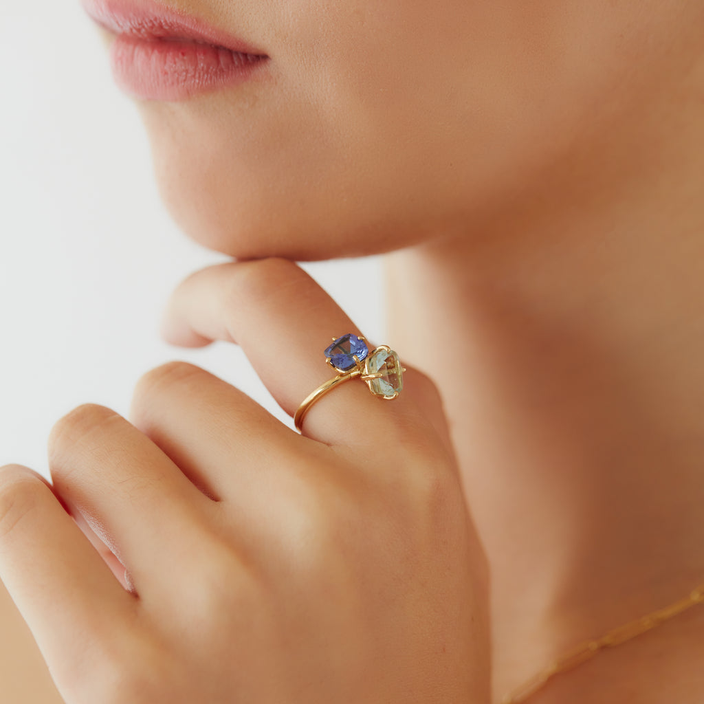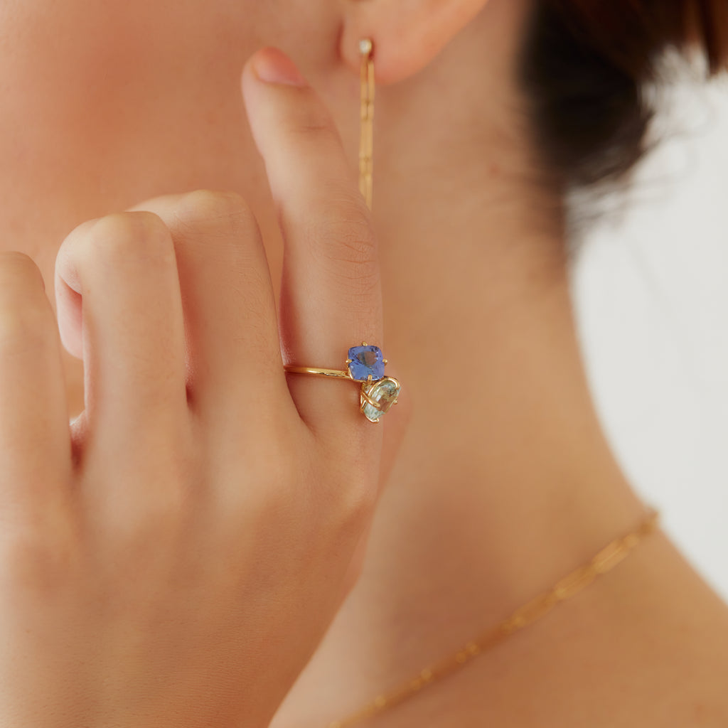 "ザ・ムーブメント” K18YG,アクアマリン,タンザナイト リング