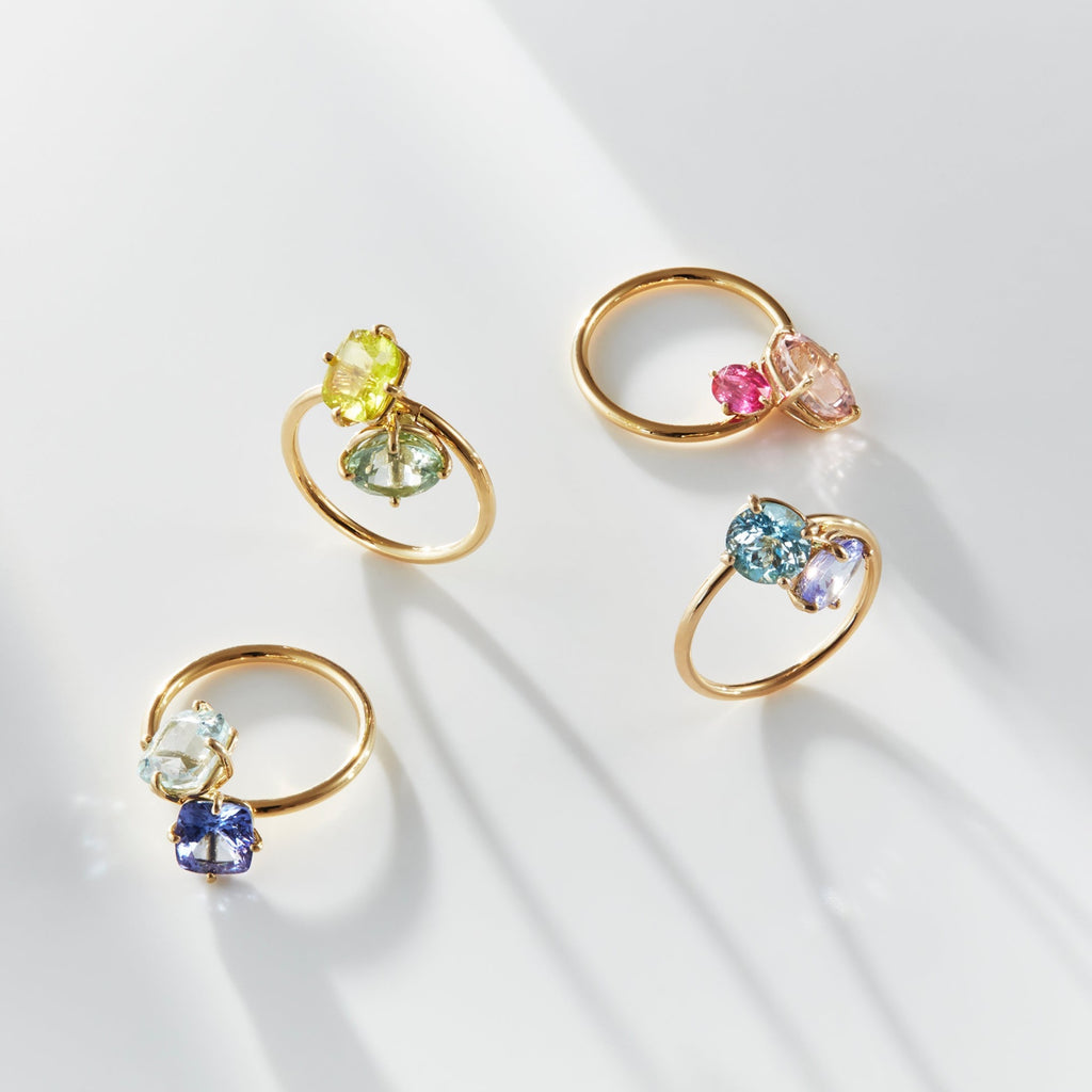 リングにセットされた2石は、それぞれが独立した動きで、指先の上でおだやかに揺れ動く新作の"The Movement" リングは、デザイナーと職人が幾度となく試作に挑み、念願叶って形になった思い入れあるデザインです。 新しい時代を感じとれる解放感と自由なマインドをデザインに込めました。