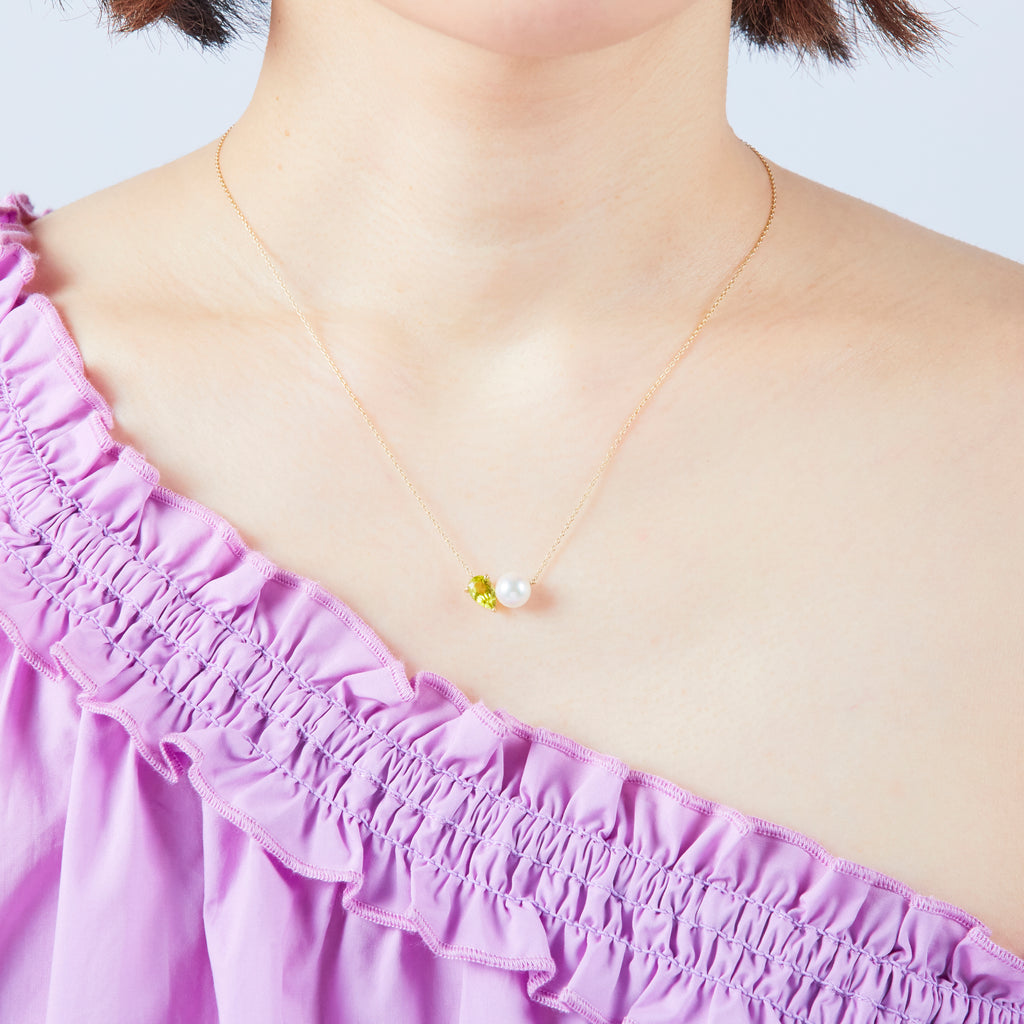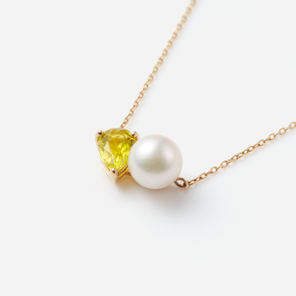 Material: K18YG, Canary Tourmaline(0.84ct), Akoya Pearl