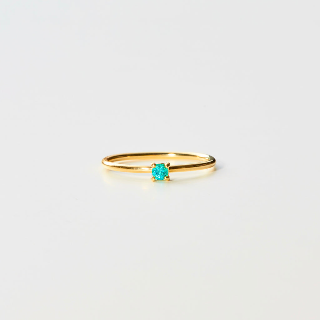 吸い込まれるような輝きが特徴的なパライバトルマリンは、昨今大変人気の高い石です。小粒ながら希少な石で、ネオンブルーのような鮮やかで発光性のある色味が、シンプルなデザインを引き立てます。